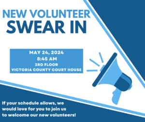 Join us at the Victoria Courthouse at 8:45 am to congratulate these new volunteers as they embark on their CASA journey. We can do little alone but together we can do so much more!