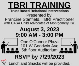 Trust Based Relational Interventions Training presented by Francine Stanfield. RSVP by 7/29/2023 361-573-3734